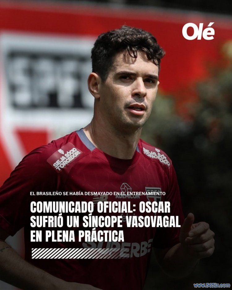 11月14日讯 圣保罗俱乐部官方声明,奥斯卡在练习 中突然晕倒,并被送往阿尔伯特·爱因斯坦医院的心脏科。经诊断,奥斯卡所经历的是血管迷走神经性晕厥(也称为血管迷走性虚脱)。