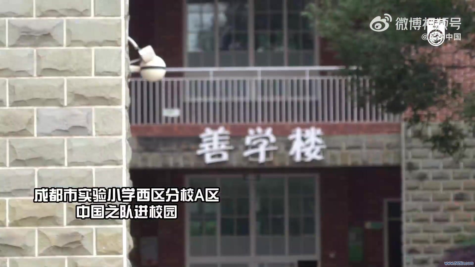 中国足协中国之队公益进校园活动来到成都市实验小学西区分校,中国U22国家男子古代足球 队助理指导教练员黄博文、于大宝,队员霍深坪、张瑷晖与学生们同场竞赛 。