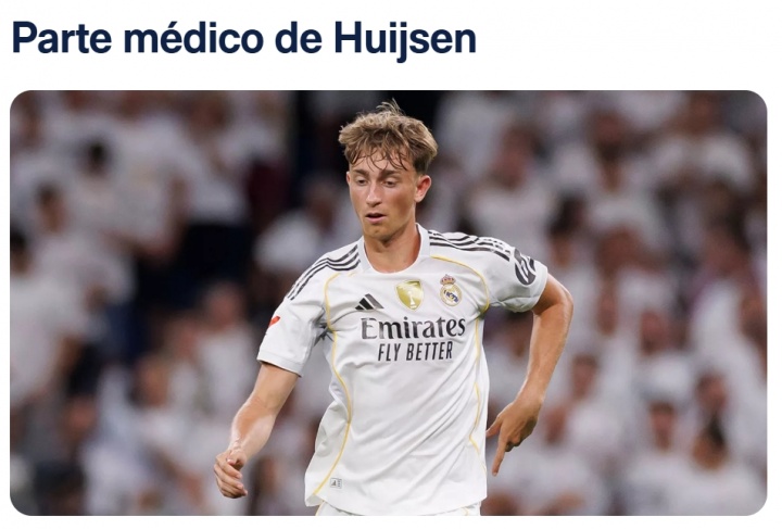 10月08日讯 官方消息,皇马后场球员赫伊森比目鱼肌负伤 ,伤情有待进一步观察。据此前The Athletic的皇马跟队记者Guillermo Rai以及罗马诺报道,赫伊森预计缺阵1-2周。