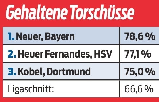 10月8日讯 《体育图片报》统计了本赛季守门员在德甲职业联赛 中的抢救 成功率,并列出前三名榜单,欧洲杯直播吧拜仁39岁守门员诺伊尔以78.6%居首。