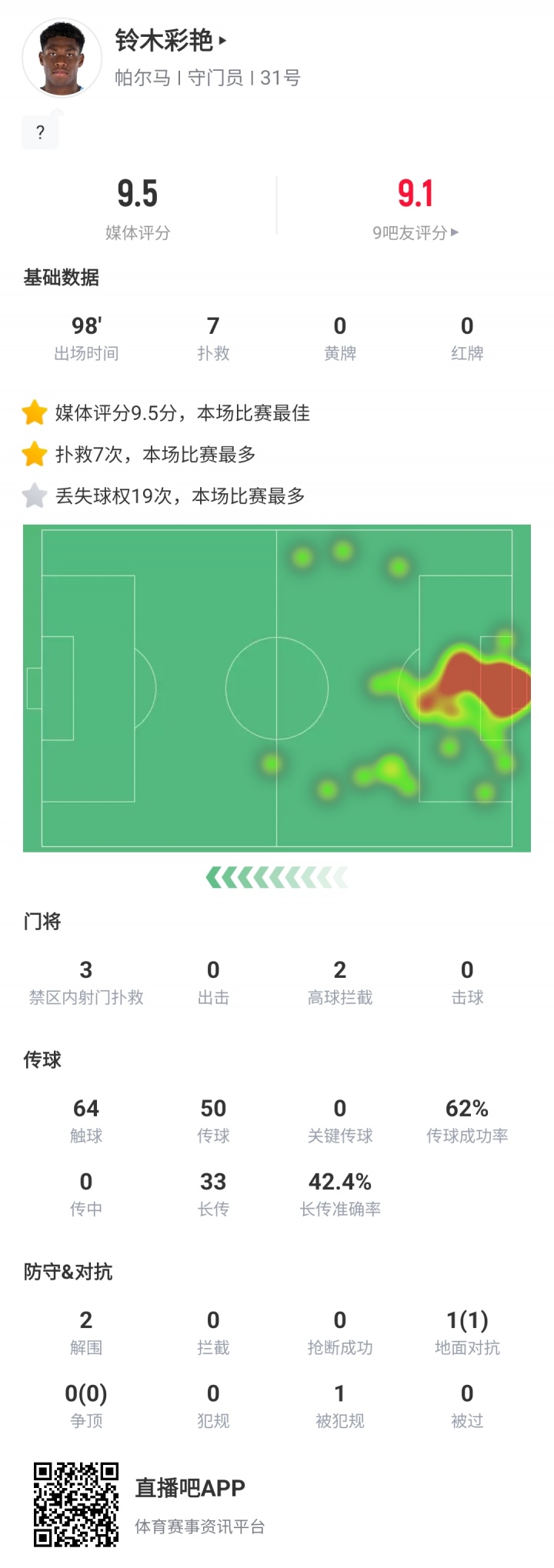 10月19日讯 意甲第7轮,十人帕尔马0-0战平热那亚,本场赛事 日本守门员铃木彩艳单场7次抢救 力保古代足球 门 不失,同时补时扑点立下大功,媒体评分高达9.5分。