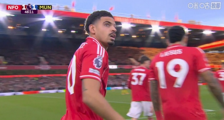 11月02日讯 曼联vs森林第48分钟,耶茨肋部传中,欧洲杯直播吧吉布斯·怀特顶球破门,曼联客场应战 1-1森林!