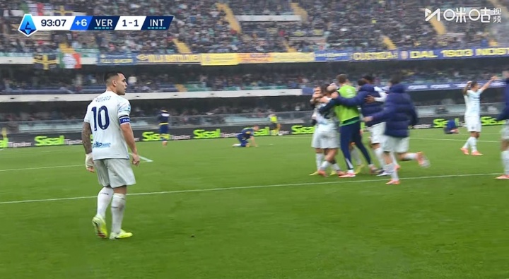 11月02日讯 意甲第10轮,维罗纳vs国米,赛事 第93分钟,欧洲杯直播巴雷拉传中造乌龙,国米2-1领跑 维罗纳。