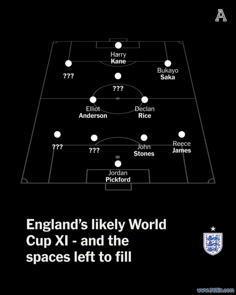 其中,皮克福德将是主力守门员,里斯·詹姆斯是主力右后场球员,斯通斯确定一个杆位中卫位置;中场球员位置确定了赖斯、埃利奥特·安德森两个杆位;前场球员位置凯恩、萨卡稳坐杆位。